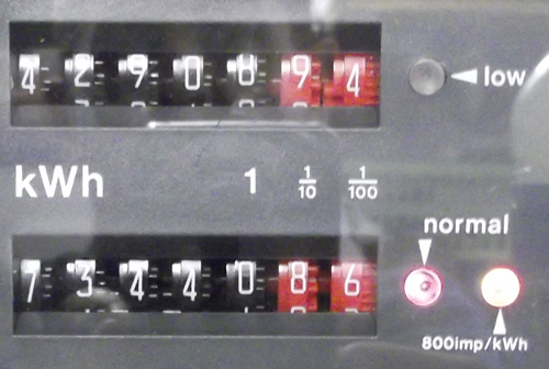 Often there are lights to show which rate of electricity you are currently using. In this case you can see the 'normal' light is on which indicates that the meter is currently recording daytime rates.